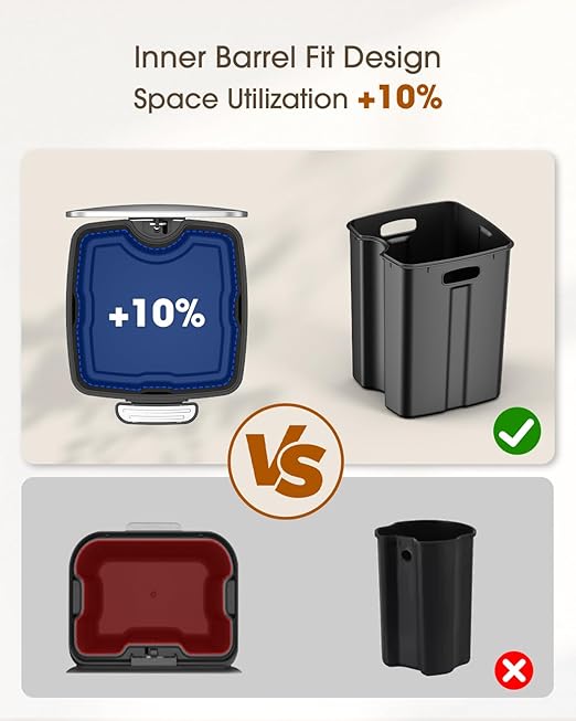 - Easy Cleaning: Removable inner bucket for easy cleaning and maintenance, keeping your kitchen waste bins fresh and odor-free