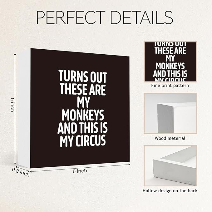 Funny Black Office Home Desk Table Decor Wood Sign - Turns Out These Are My Monkeys And This Is My Circus, Fun Desk Accessories for Work, Office Decorations for Work Women, Boss Gift, 5x5 Inch