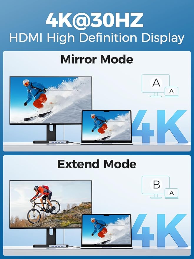 - USB C HDMI Hub: Just connect the usb c multiport adapter to HDMI port, and you can instantly achieve vivid 4K@30Hz (3840x2160) video and audio transmission, which can be mirrored or expanded. Transfer vivid on-screen 3D effects from your laptop screen to monitors, projectors, HDTVs, and more. USB C hubs give you more workspace and are perfect for home offices.