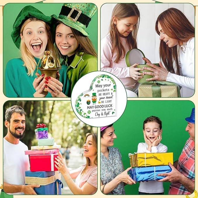 Yopyame St. Patricks Day Gifts - Irish Blessing Four Leaf Clover Acrylic Heart Sign Desk Decor May Your Pockets Be Heavy Shamrocks Keepsake Paperweight for Women Home Table Office Desk Shelf Mantle