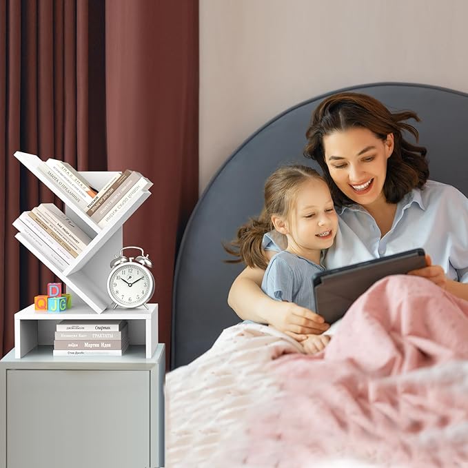 - ✅【High Quality Material】Godferyxin book tree bookshelf Made of MDF wood, which is healthy and environmentally friendly, with smooth and high gloss finish, tough texture and the firm structure. Won’t be decayed or damaged. The bolts would never scratch the books.