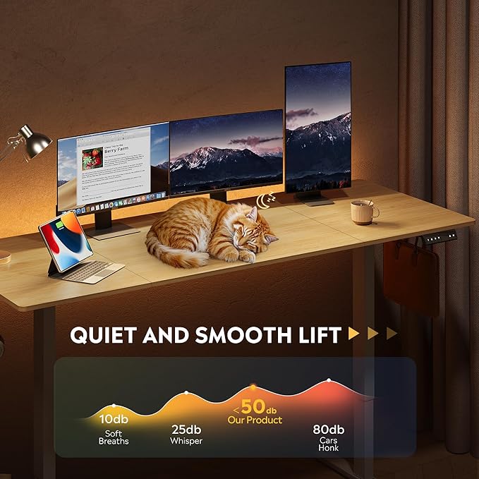 - 【Quite & Smooth Height Adjustments】Tri-motor system delivers whisper-quiet (<50dB) height transitions (28.35"-46.45") in seconds, eliminating manual adjustments and prevent desktop tilting. Standing desk adjustable height perfected for ergonomic shifts, ensuring buttery-smooth operation whether sitting or standing.