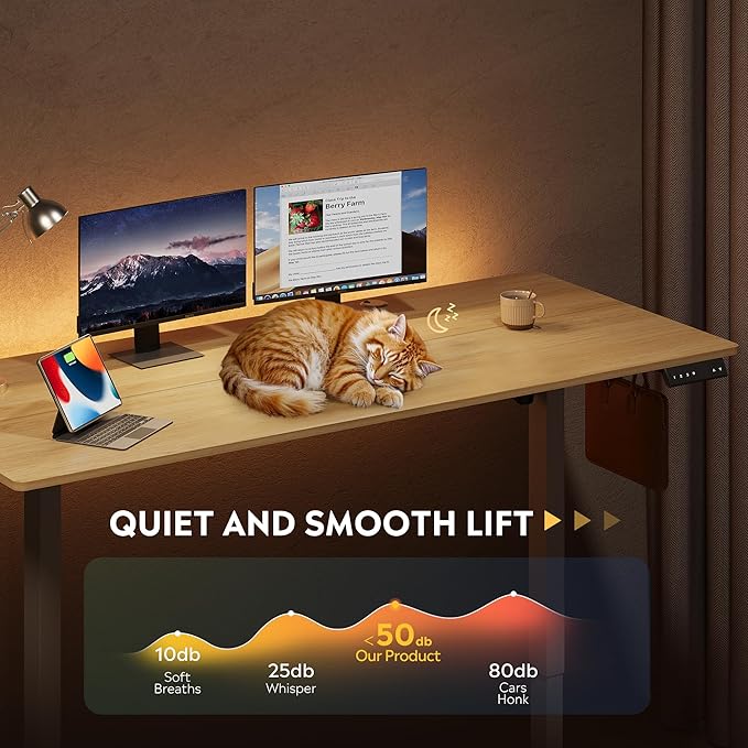 - 【Quite & Smooth Height Adjustments】Tri-motor system delivers whisper-quiet (<50dB) height transitions (28.35"-46.45") in seconds, eliminating manual adjustments and prevent desktop tilting. Standing desk adjustable height perfected for ergonomic shifts, ensuring buttery-smooth operation whether sitting or standing.