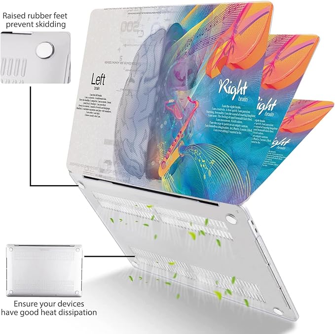 - Stylish Design: Trendsetting designs with high quality printing with everlasting colors - perfect for adding some extra flair to your Macbook.The vent slots at the bottom of the case can easily keep your Laptop cool. The four rubber feet can safely keep your device stable.