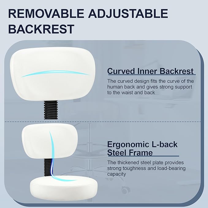- Ergonomic Detachable Backrest: The PU leather backrest of this standing chair can be removed as needed. The curved backrest design is ergonomic. The thickened backrest steel plate provides strong toughness and load-bearing capacity