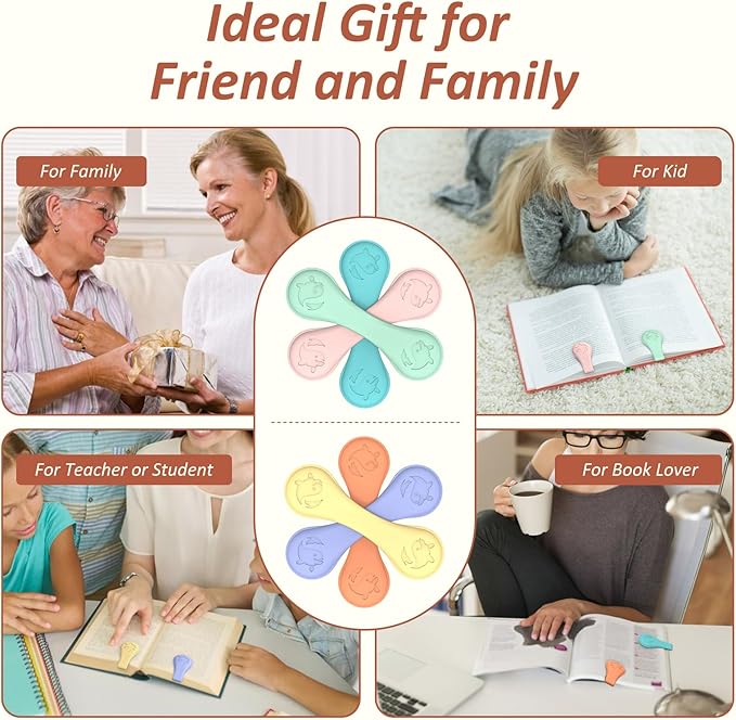 - 📚【Ideal Gifts for Book Lovers】The book page holders can enhance your reading adventures. Colorful and adorable bookmark is a good reading accessories for readers. It is a meaningful gift for friends, family members, teacher, student, colleagues who are booklovers on Christmas, Thanksgiving, classroom prizes, Valentine's Day, birthdays, Children's Day.