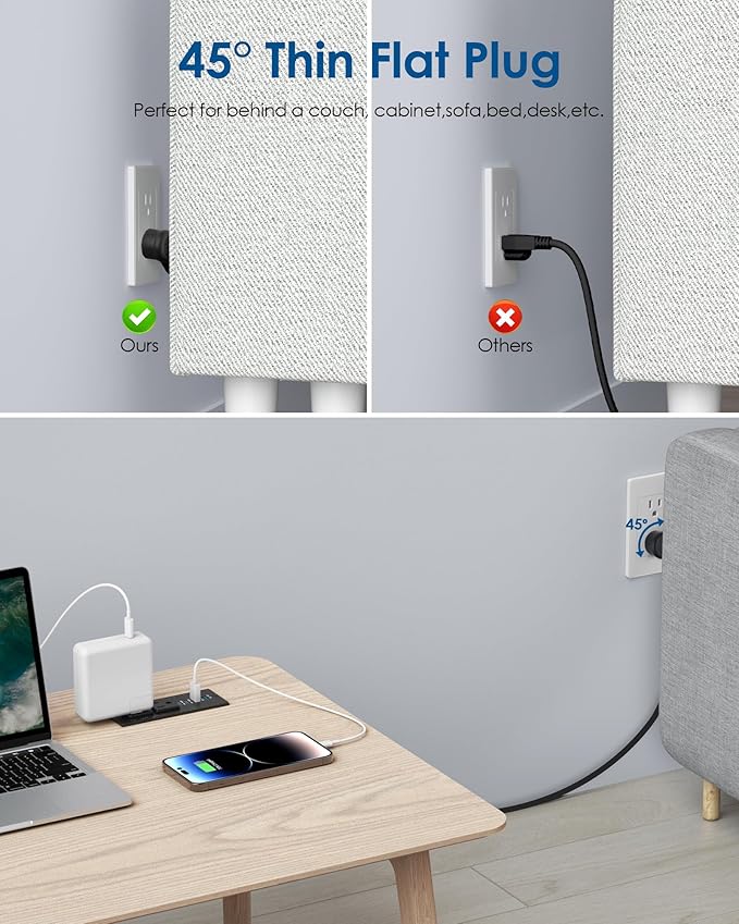 - Easy to assemble & mini size: According to the size of the picture, cut a rectangle in the table, place the recessed outlet in then screw it tight.Hole cut size: L 4.3" * W 1.78"