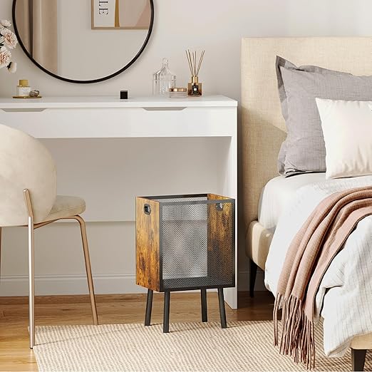 - 【Wood + Metal Mesh Combination】This rectangular trash can is crafted from three panels of retro wood-grain MDF, with metal mesh sides and four sturdy metal legs. This combination offers a stylish and modern aesthetic that blends seamlessly into your home or office decor, enhancing the surrounding environment and adding a touch of sophistication while keeping your space tidy.