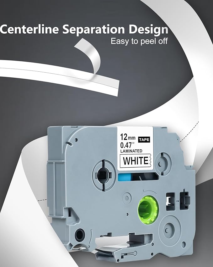 - Split Backing Design: The backing tape is split lengthways in the middle for easy peeling. These replacement for Brother 12mm 0.47 inch laminated white tapes will be good helper for your home and office labeling tasks