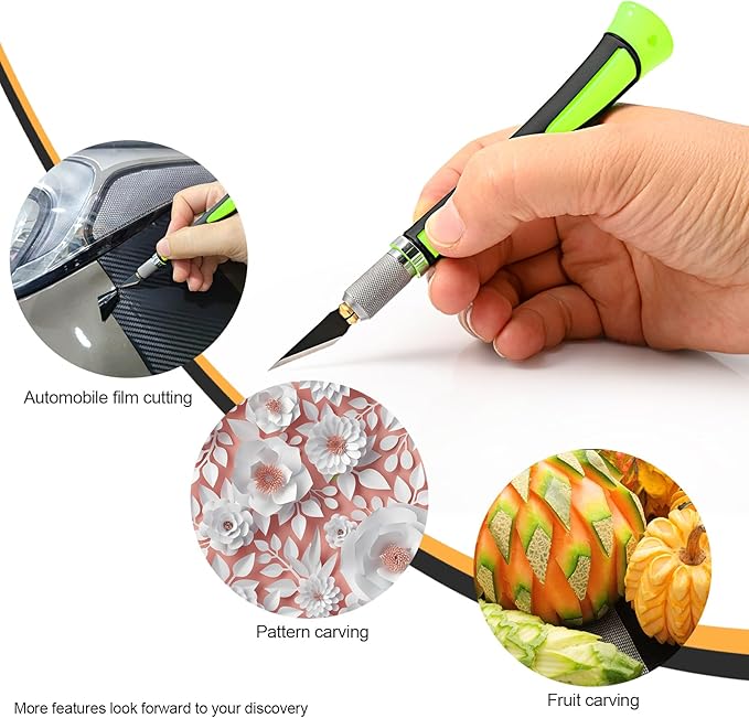- Come with Extra 10PCS Knife Blades:10 pcs upgraded carbon steel craft blades are very sharp and durable. Precision art knives have everything you need for scrapbooking supplies, crafts, DIY projects or work tasks.
