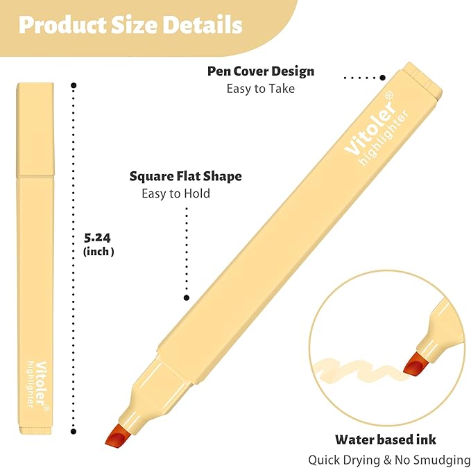 - Easy to Hold: The pastel highlighter is designed with square shape,itβs comfortable and easy to hold, without a sore hand and don't roll around while using.