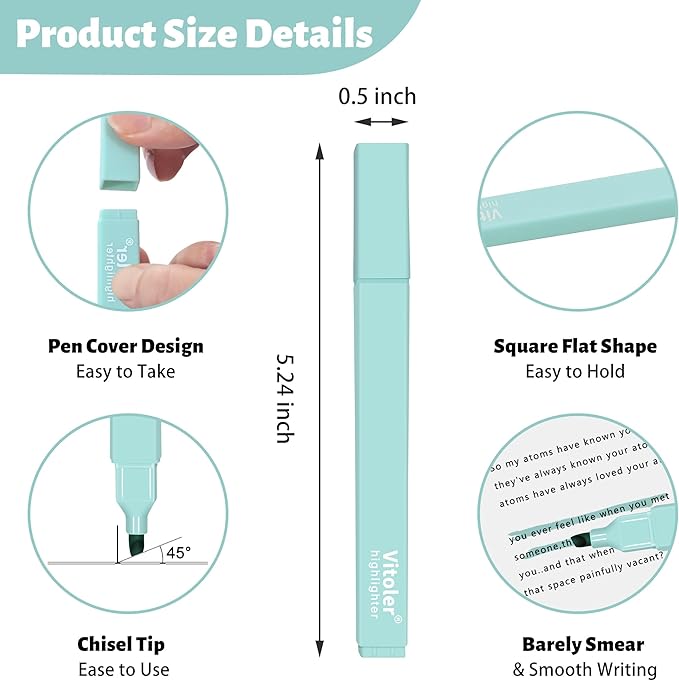 - Cute Pens Easy to Hold: The pastel highlighter is designed with square shape,itβs comfortable and easy to hold, without a sore hand and don't roll around while using.