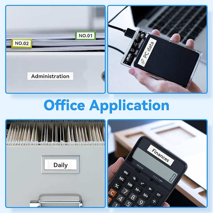 - High-Contrast White Background with Black Text: The white background paired with black text offers excellent readability, making it ideal for organizing files, labeling cables, or marking household items.