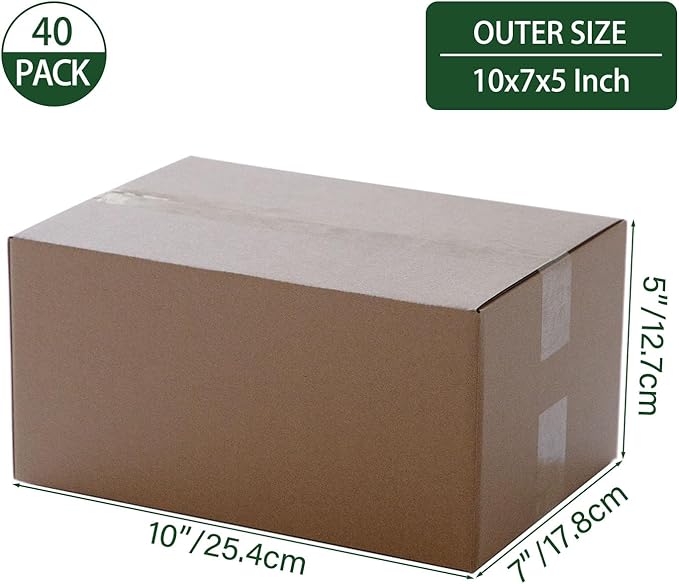 10x7x5 Inches Shipping Boxes Set of 40, Brown Corrugated Cardboard Box Literature Mailer for Packing Small Business