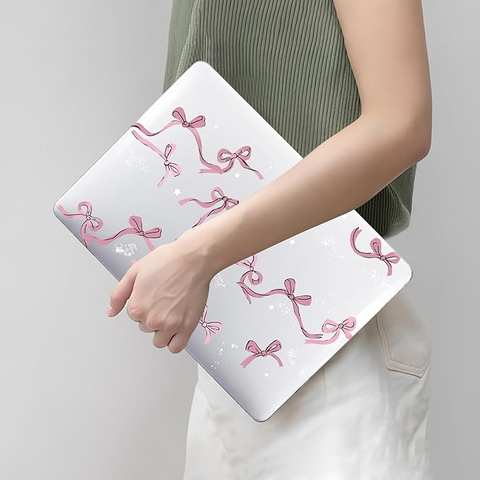 DTangLsm Compatible for 2025 MacBook Air 13 inch Case 2024 2023 2022 M4 M3 M2 A3240 A3113 A2681 with Touch ID, Clear Slim Plastic Hard Shell Case&Keyboard Skin for MacBook Air 13.6 M2 Cover,Pink Bows
