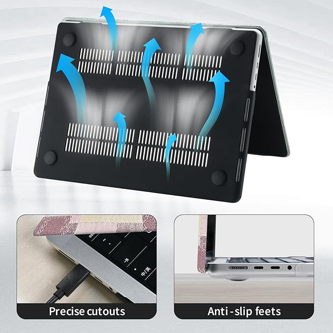 - Functional Design: Precise construction allows complete access to all ports & features, Plug your charger, cable or headset without removing the case. Bottom Cover designed with ventilation holes and non-slip silicone feets achieve safe and fast heat dissipation, keeping your Mac Air 13 inch M3 in place, safer and more stable in use