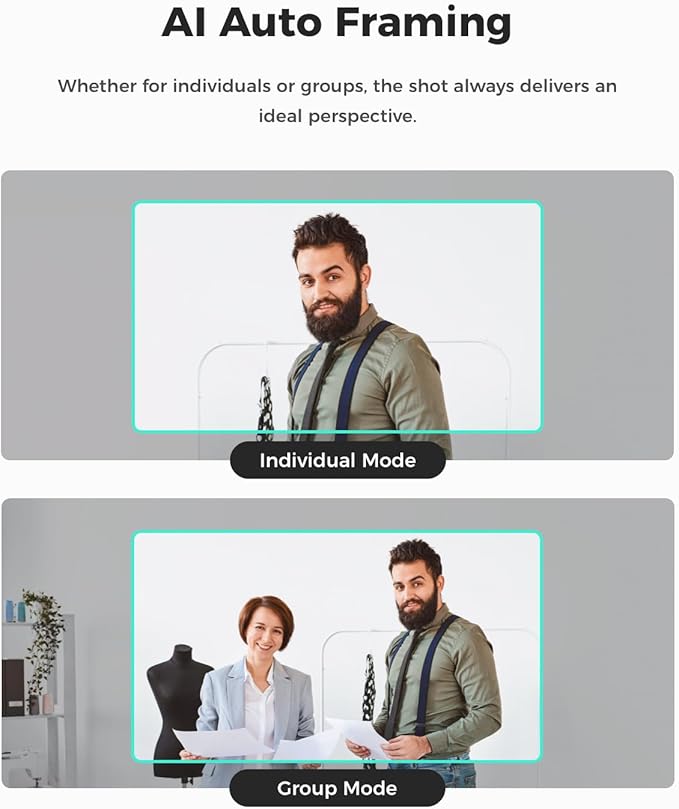 - 【Intelligent AI Framing】Activate our computer camera's group mode and intelligently recognize individuals or groups, optimizing the composition and focus for each frame in real-time. Elevate your group meetings and live streams with ease.