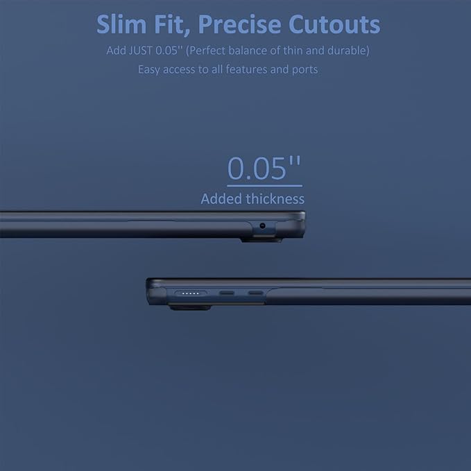 - Precise Cutouts, Snug Fit: This MacBook Air 15 case is meticulously designed to fit the original MacBook using micro-3D cutting technology. It features precise openings and cutouts, allowing easy access to all the ports and features. The semi-transparent design makes the laptop's logo visible while providing a snug fit that feels like a second skin. Additionally, the case allows for smooth opening and closing.