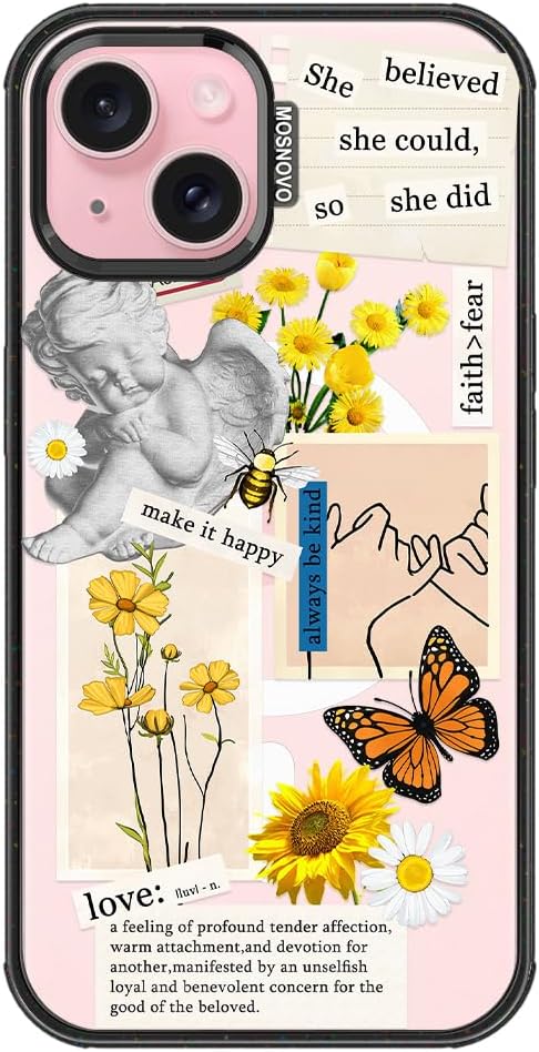 MOSNOVO Magnetic Case for iPhone 15, 10ft Military-Grade Protection, Compatible with Magsafe, Shockproof Phone Case for iPhone 15 - Vintage Collage Art - Clear Black