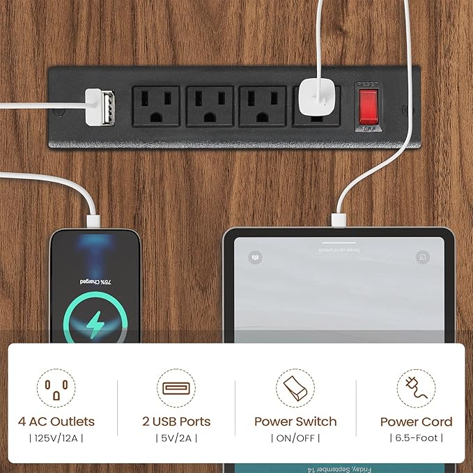 - 【Built-in Charging Station】Our charging station includes 4-Outlet & 2 USB Ports to provide power for up to 6 devices simultaneously. Also includes an on-off switch, thanks to the on-off switch, one-button power off to ensure safe electricity use, which strengthens security.