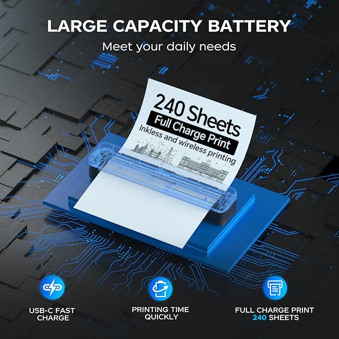 - 🔋Long-Lasting Battery with a Single Charge: One of the standout features of our printer MT610 is its long - lasting battery. With a single charge, you can print up to 260 pages. Whether you're on a multi - day journey or in an area with limited access to power outlets, you can rely on this printer to keep up with your printing demands. The energy - efficient design ensures that the battery doesn't drain quickly, even during extended use.
