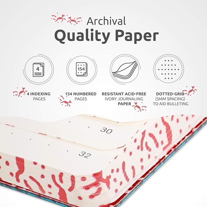- NON-BLEED 120GSM THICK PAPER: This art journal contains 80 sheets (160 pages) of acid-free, smooth, ivory, non-bleed 120 gsm thick dotted notebook paper that is ink-proof and won’t create feathering if you use a fountain pen, or similar. It includes 4 indexing pages and archiving label stickers to help you keep track of things.