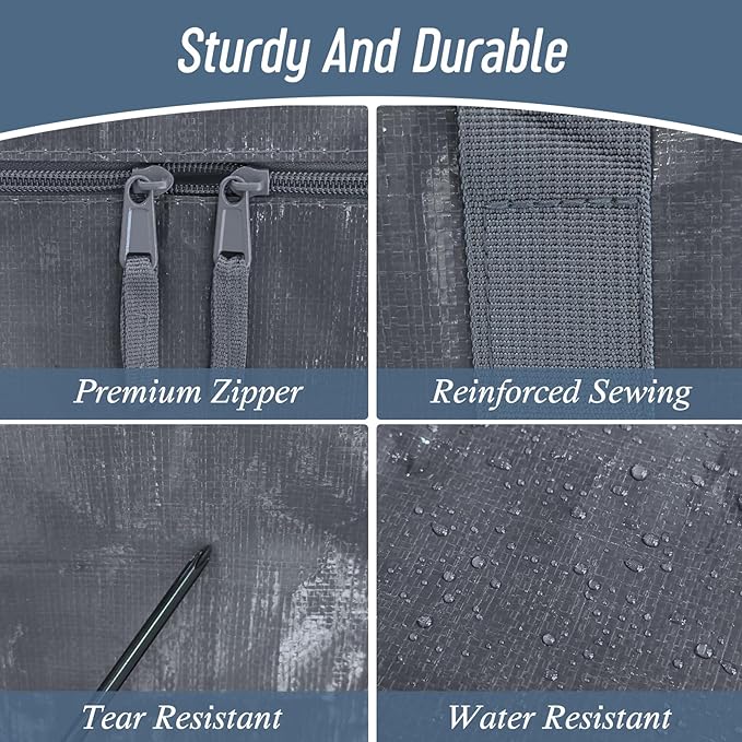 6 Pack Extra Heavy Duty Large Moving Bags with Strong Zipper & Comfortable Handles, Sturdy & Durable Clothes Storage Bags Totes Bins, Packing Moving Boxes for College Supplies, Gray