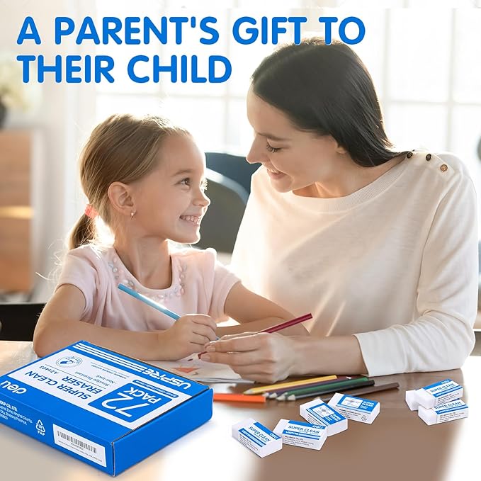 - BULK VALUE PACK – 72 PREMIUM ERASERS – Get more for less! Our erasers bulk pack offers 72 durable white erasers(1.77"L x 0.79"W x 0.39"H) at an unbeatable price, ideal for classrooms, offices, and back to school supplies. A cost-effective solution for students, teachers, and artists
