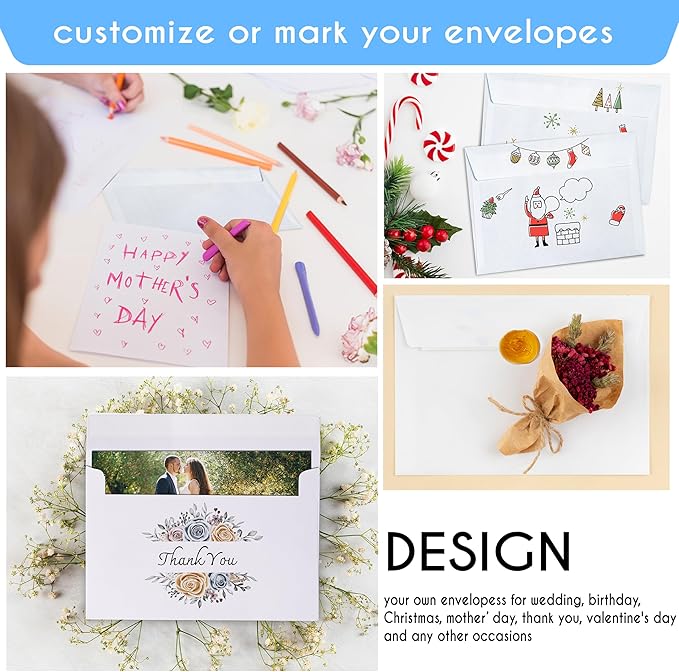 - 4x6 envelope suitable for 4x6 cards/photos: These envelopes are also very suitable for direct mail, letters, postcards, weddings, birthdays, baby showers, graduations, holidays, handmade cards, business, and various party invitation cards. So you can rely on them to meet all your special mailing needs.