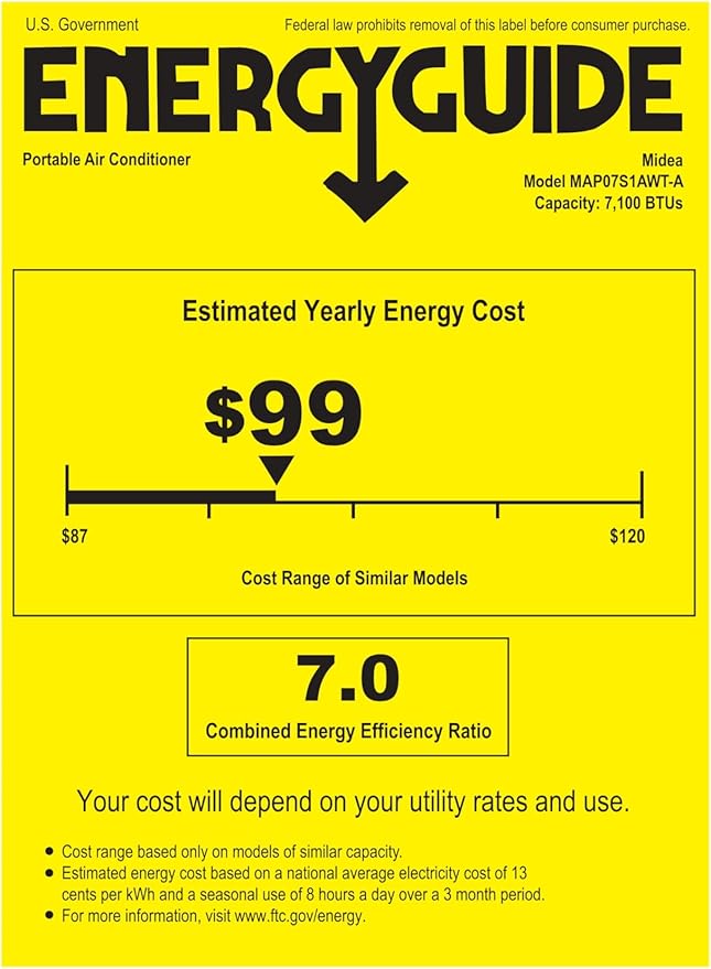 - SMARTCOOL - Midea 10,000 BTU ASHRAE (7,100 BTU SACC) Portable Air Conditioner delivers fast, effective cooling for spaces Up to 300 sq. ft. while providing fan and dehumidification functions in any home, creating a relaxing and comfortable environment