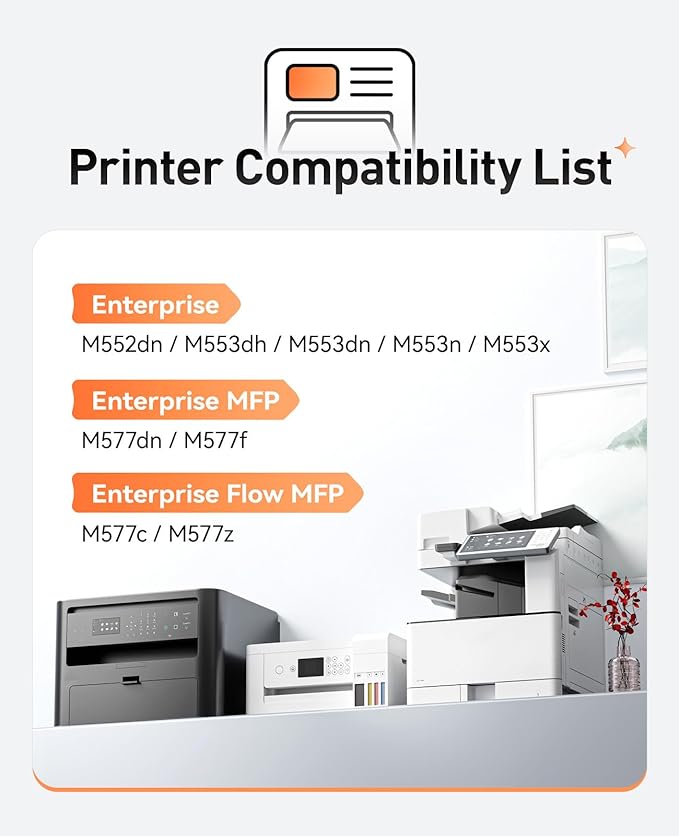 - Compatible Printer: Compatible for HP Color LaserJet Enterprise Flow MFP M577c, M577z; HP Color LaserJet Enterprise M552dn, M553dh, M553dn, M553n, M553x; HP Color LaserJet Enterprise MFP M577dn, M577f Series Printer.