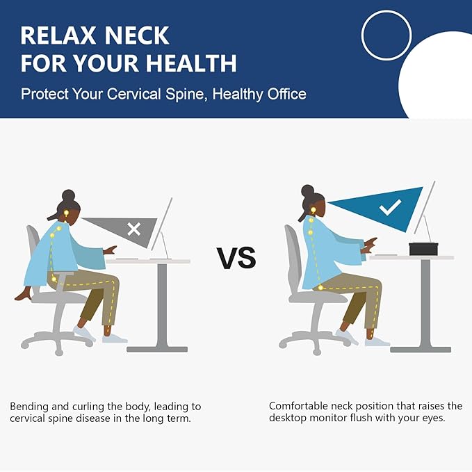 - 【Avoiding Shoulder Pain at Work】Raise monitor 5.5 inch so that your eyes are at screen level. The body sit up straight, correct sitting posture can prevent cervical spondylosis, reduce the body pressure of office workers.
