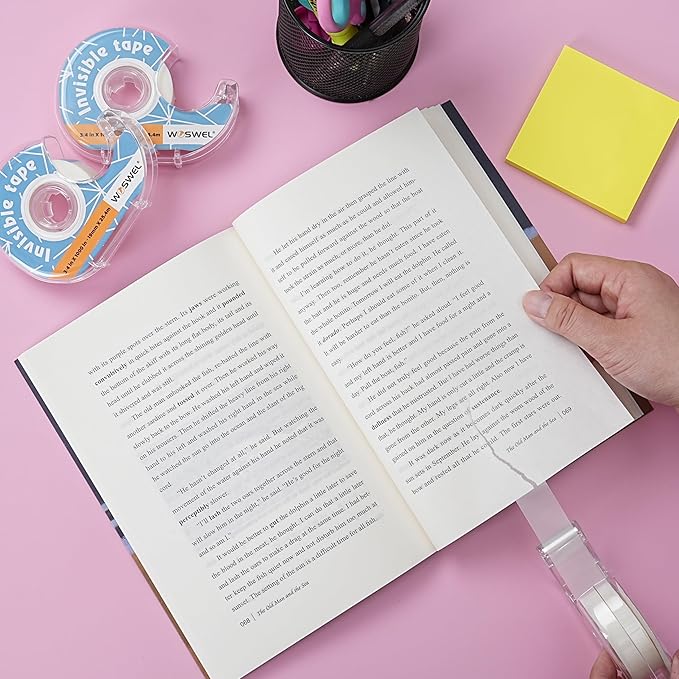 - Tape surface: Matte finish, semi-transparent, does not completely cover documents or pictures. Writable surface, easy to mark and label on the tape. Suitable for packaging, labeling, and crafting.