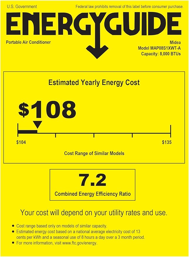 - SMARTCOOL - Midea 12,000 BTU ASHRAE (8,000 BTU SACC) Portable Air Conditioner delivers fast, effective cooling for spaces Up to 350 sq. ft. while providing fan and dehumidification functions in any home, creating a relaxing and comfortable environment