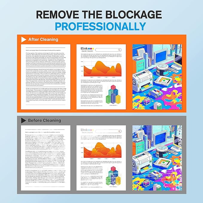 - 【Excellent Cleaning Ability】 Repair unclog cleaning kit contains enzymes, which can strongly dissolve and clean dry ink, wet and protect the print head. The degradation factor can strongly dissolve the hard block and other soluble impurities left after the ink hardens, making the ink flow more smoothly, protect your printhead and extend your printer life.