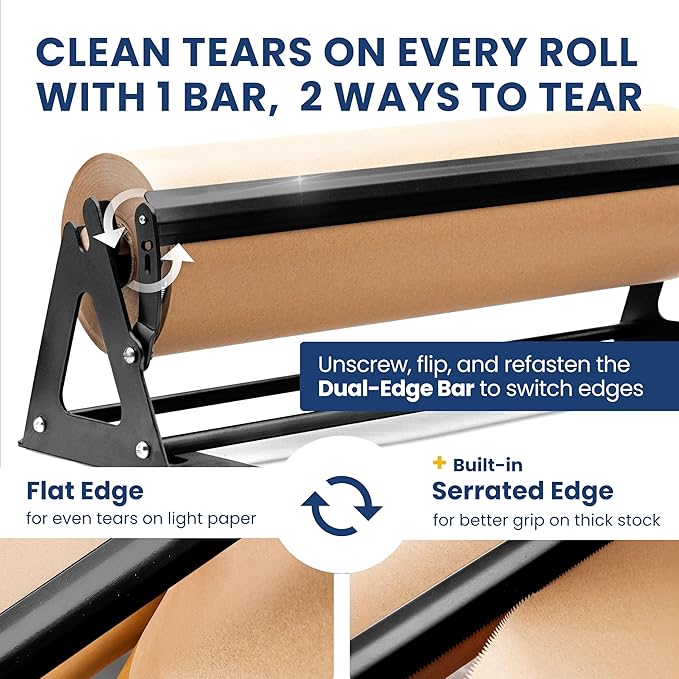 - Roll Compatibility: Fits rolls up to 24'' wide, max 9'' diameter (equivalent to 1000ft on a 1'' core). Be sure to insert your paper with the loose end over the top; butcher paper, construction paper, brown paper, or craft paper may be used
