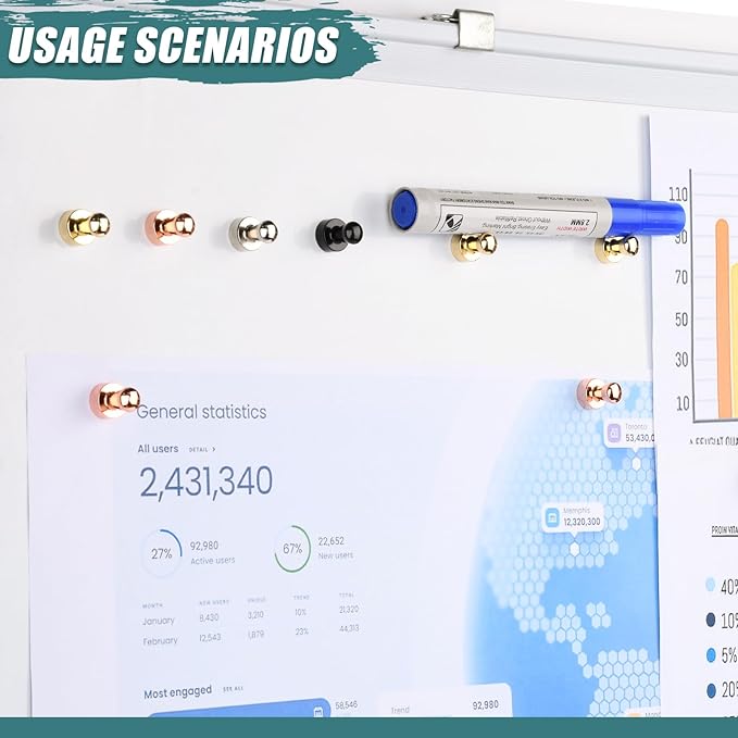 - 【Strong Magnetism】 Powerful neodymium magnets can hold up to 24 sheets! Industrial-grade heavy duty magnet features make strong fridge magnets easy to grip and attach to the whiteboard. No marks or stains when removed silver metal push pin magnets after used from whiteboards, refrigerators or iron products