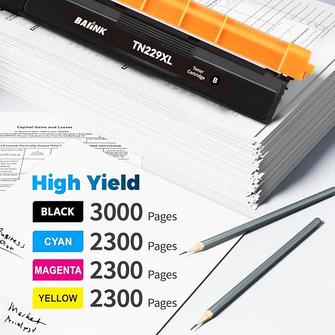 - Package Contents: 1 x TN229XL black, 1 x TN229XL cyan, 1 x TN229XL yellow, 1 x TN229XL magenta