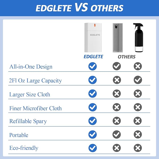 - Lifetime Refillable – Save 50% vs. Disposable Cleaners – The Edglete screen cleaner kit is expertly designed to clean a wide range of delicate electronic screens, including those on computers, car screen, laptops, smartphones, console, monitors, pc, MacBook, iPads, iPhones, Mac, tablets, glasses, cameras, camera lens, TVs, and even the most sensitive OLED, LCD, LED, and CRT screens. A must-have accessory for anyone who appreciates a flawless viewing experience