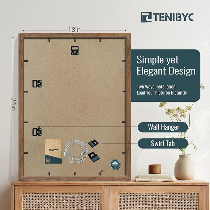 - 【Strong Practicality】Our walnut frame back panel is equipped with multiple hangers, so it can be displayed on the wall horizontally or vertically, perfectly adapting to 18x24 or 24x18 photos. Additionally, our unique spin-lock design ensures a swift and effortless setup