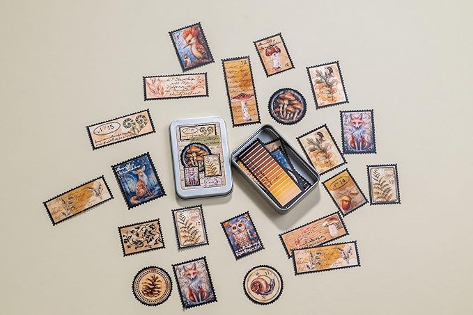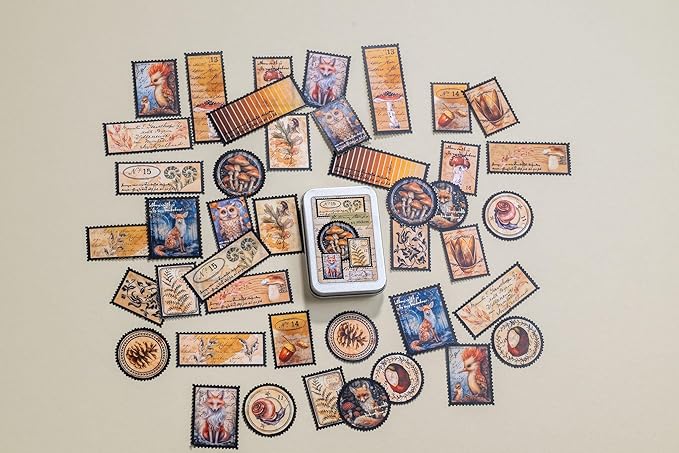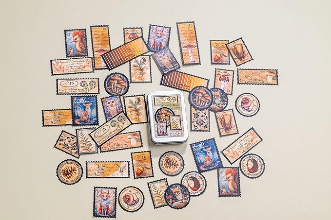 - This beautiful box of stickers is a product created by CoraCreaCrafts. They feature all kinds of autumn inspired designs with a vintage and fantastic twist