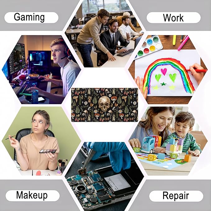 Cool Skull Desk Mat Floral Mouse Pad Black Mushroom Plants Goth Desk Pad XXL Large Gaming Mousepad Laptop Computer Keyboard Mouse Mat 31.5x15.75 in, Office Desk Mats Decor Accessories for Women
