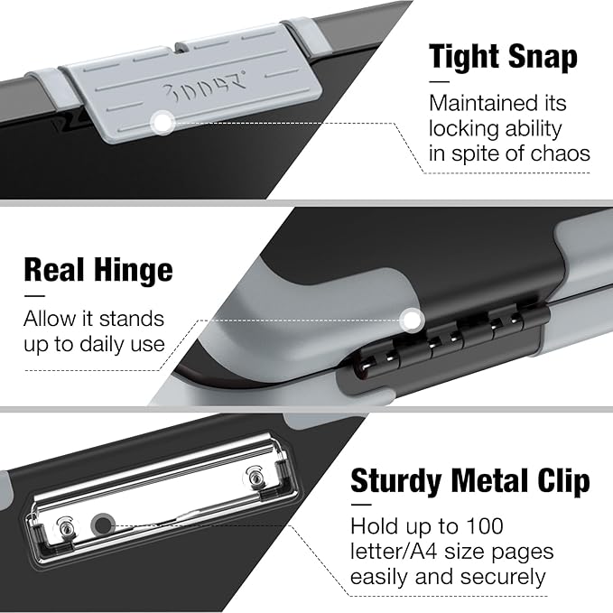 - Unrivaled Durability & Ultimate Protection: Reinforced with rubber corner bumpers and crafted from high-strength plastic, this clipboard is built to endure the toughest environments, preventing accidental drops and impacts. With a real hinge and tight snap closure, it ensures unparalleled durability