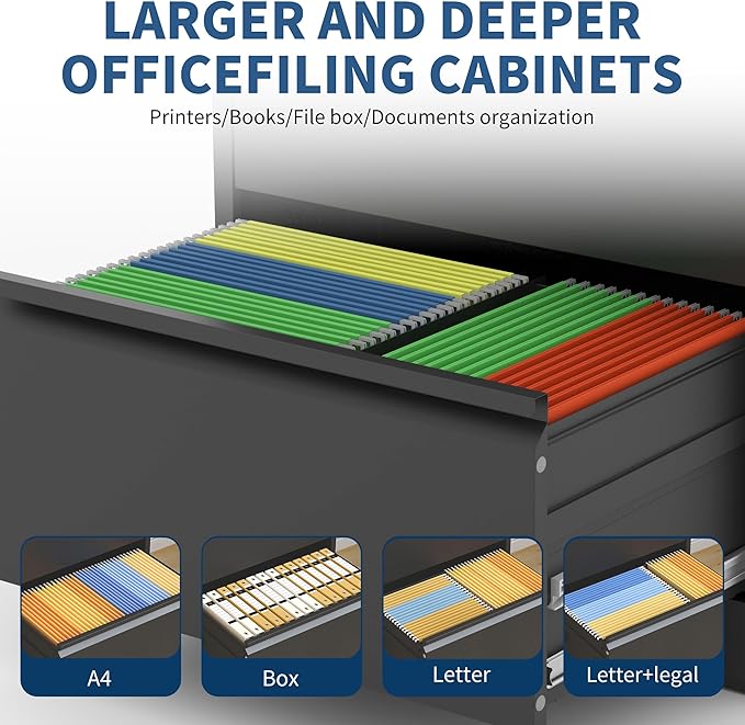 - 【Durable Construction】 Crafted from high-quality cold-rolled steel, our file folder cabinets features a powder-coated, phosphate-free epoxy finish. This ensures robust durability, resistance to scratches and rust, completely odorless and effortless cleaning, making it a long-lasting addition to your office or home.