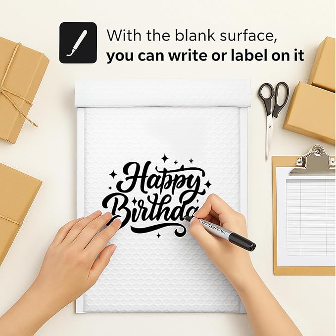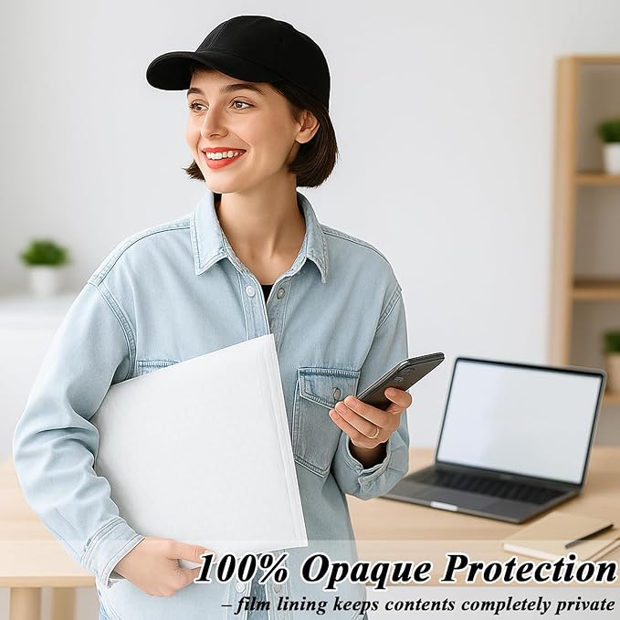 - White Bubble Mailers: Our padded mailing envelopes are made of PE material,which is safe and strong,not easy to tear or puncture,highly waterproof and suitable for any weather changes,provide excellent protection for your parcels without the need for additional packing materials