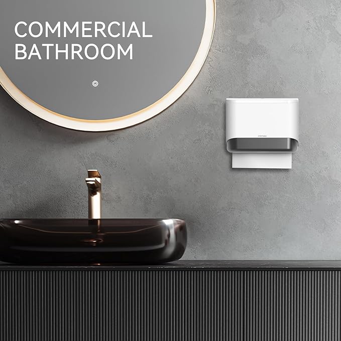 - 【SLEEK PAPER DISPENSER】This sleek bathroom paper towel dispenser is made of high impact ABS material. Built to last even for high-traffic areas. Designed with smooth surface and round edges for easy daily maintenance.