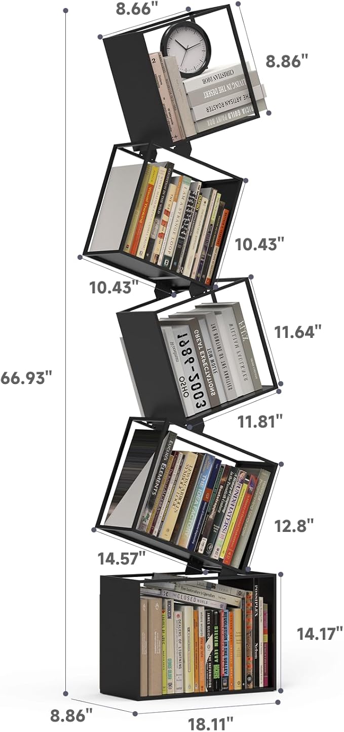 - Unique Geometric Design – A True Statement Piece: Featuring a striking 5 tier open structure with a sleek matte metal finish, this bookshelf breaks traditional norms with its slanted geometric design. It’s more than just storage—it’s a bold visual centerpiece that adds creativity and modern sophistication to any space.