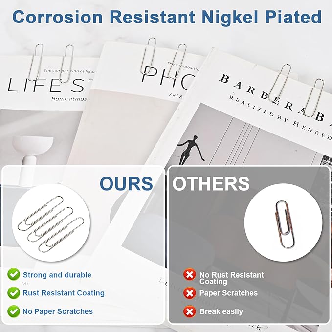 - Jumbo Paper Clips Large are Made of Metal, Resist Corrosion, Non-Skid,Prevents Snags or Marks on Papers.