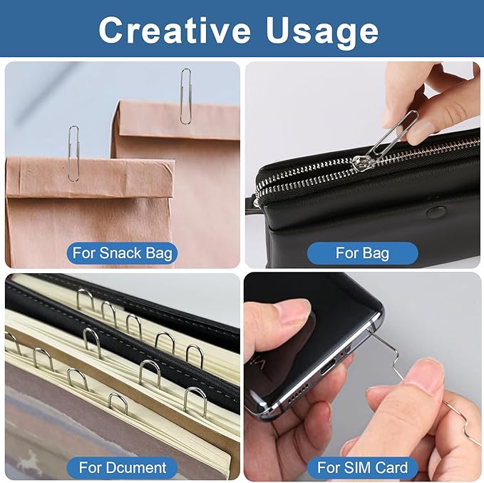 - Heavy Duty Non-Skid Paper Clips Jumbo Paperclips Can be Used not any for Filing Official Documents and Organizing School Papers, but also for DIY Projects, Bookmarks, Album Folders, Business Card Holders, and Envelope Clasping.