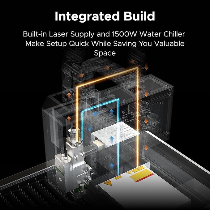 - Quick & Easy Setup: Featuring a pre-installed water chiller and laser power supply, this metal laser cutter is ready to go right out of the box, eliminating any time-consuming preparation.
